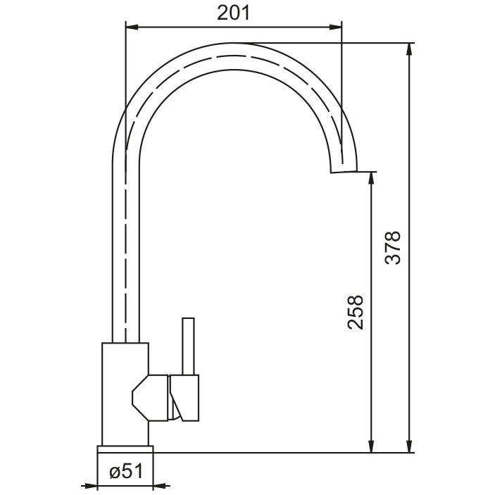 Monocomando lavello acciaio inox con canna tonda