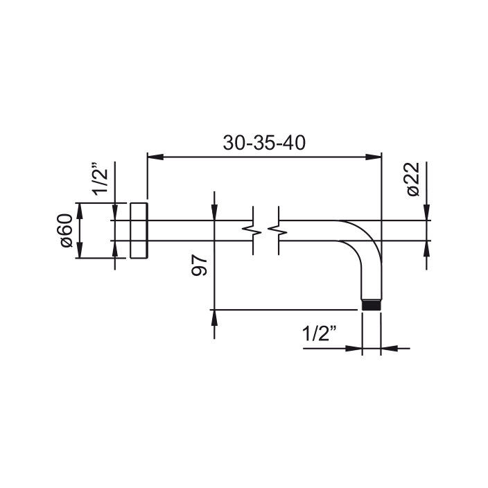 Braccio doccia in ottone cromo tondo (cm 30-35-40)