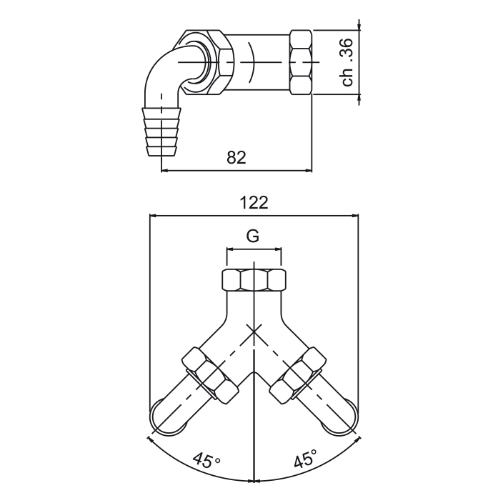 Giunto due vie 1” con due curve