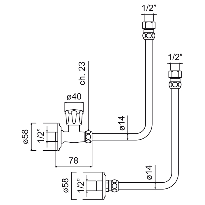 Serie boiler con rubinetto e squadrette ø 14